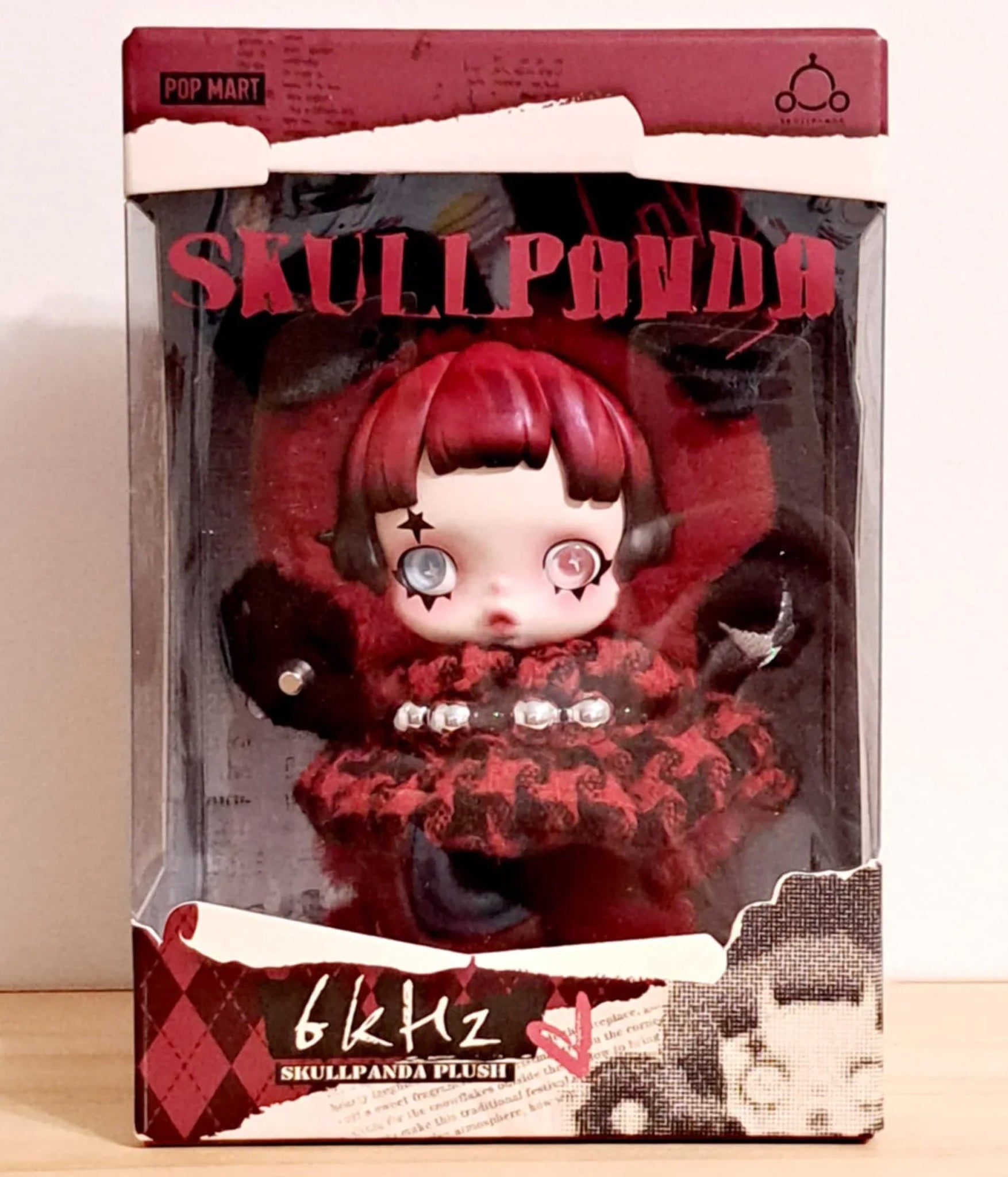 Unboxing of Skull Panda's limited edition European exclusive 6 kHz plush pendant, featuring movable eyes, studded skull panda bits, and a scrunchie.