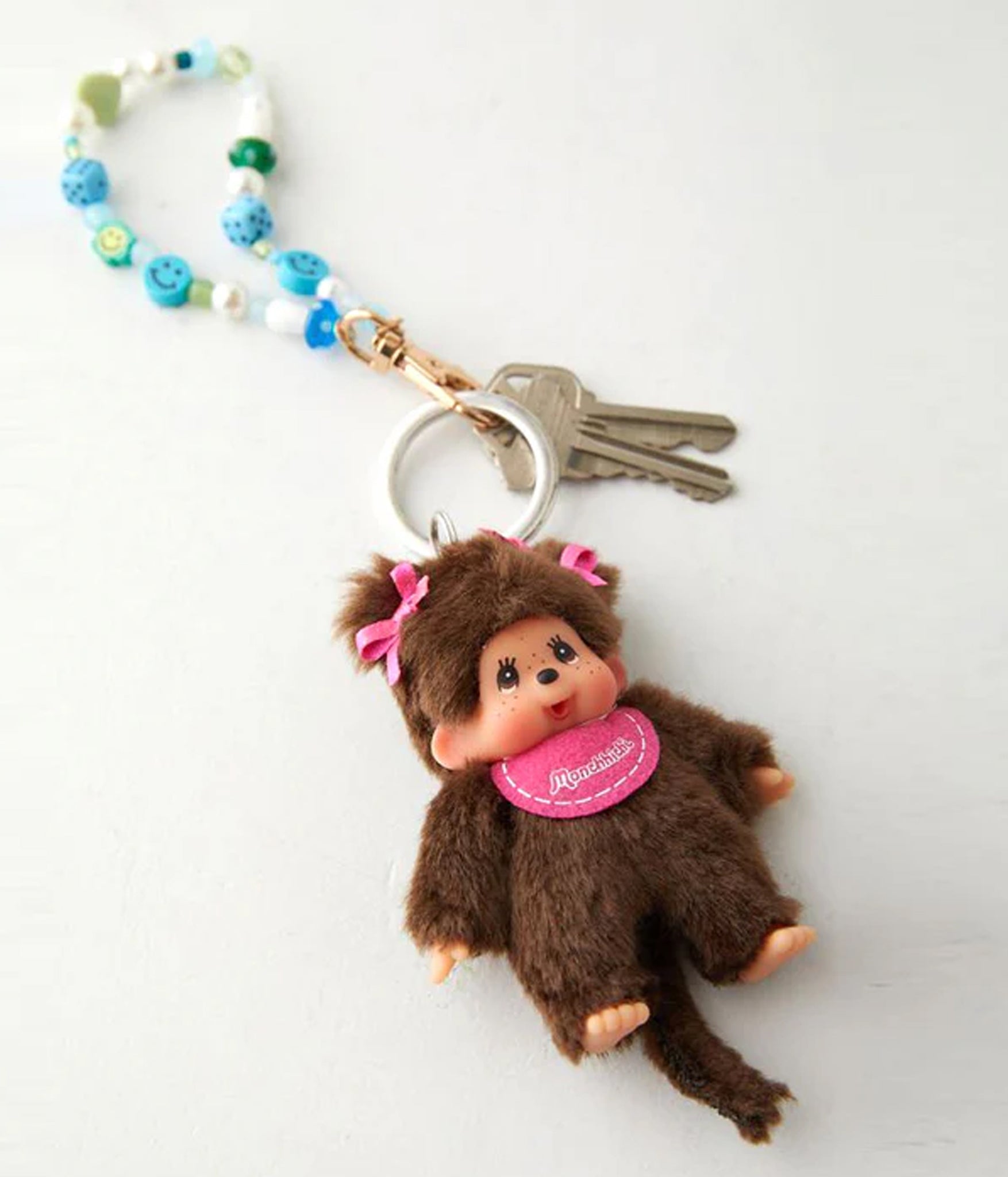Add a touch of whimsy to your everyday essentials with the Monchhichi Classic Key Chain. This itty bitty keychain features a fuzzy monkey silhouette, topped with a delicate bow and available in 3 fun colors. Securely attach it to your belt loops or keys with the metal O-ring for a playful touch!
