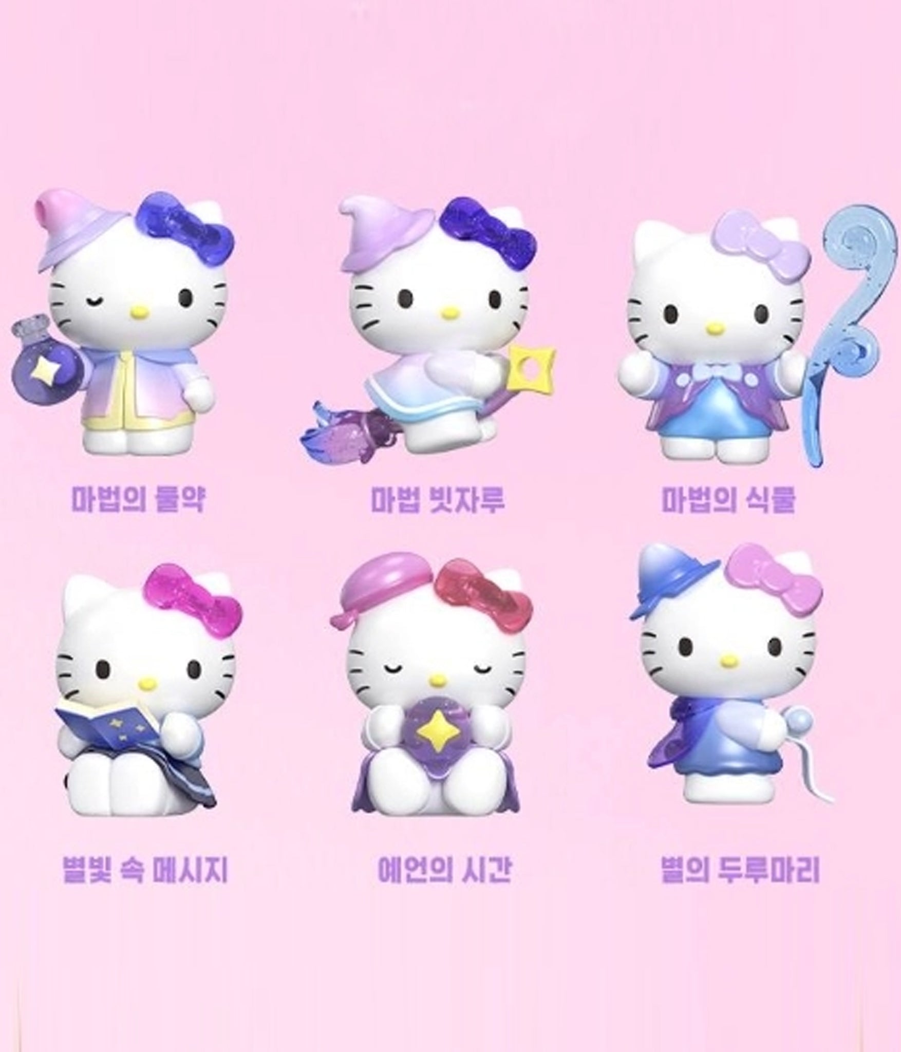The Hello Kitty Magical Study Series features our favorite kitty dressed in charming pastel outfits, studying magic with wands, scrolls, and crystal balls.