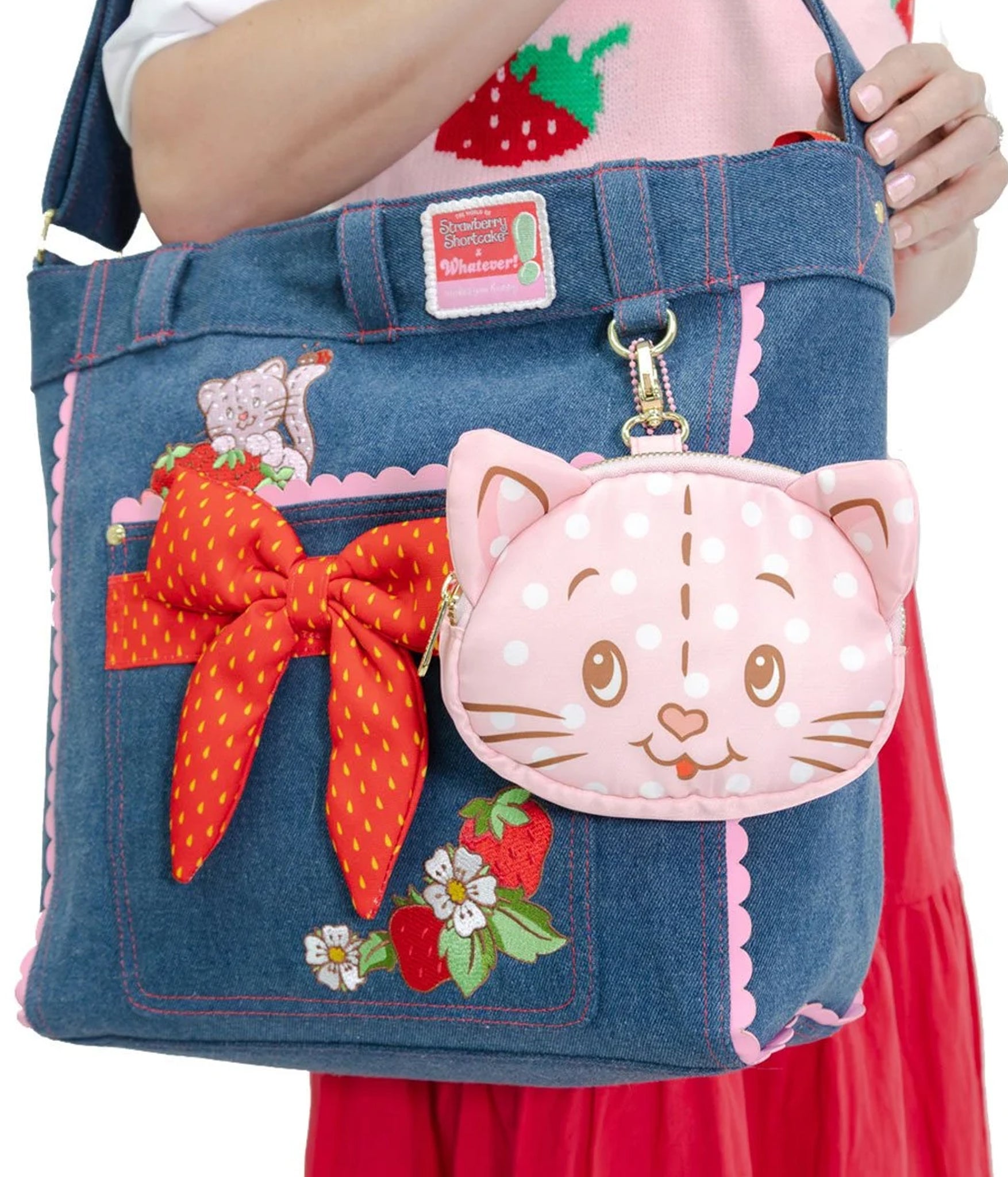 This versatile cutie comes with a removable crossbody strap that does double duty - wear it as a mini bag for hands-free adventures or clip it onto another bag as a playful bag charm. And if you really want to level up your look, pair it with the matching Strawberry Shortcake Denim Tote Bag (sold separately) for the ultimate collectible combo.