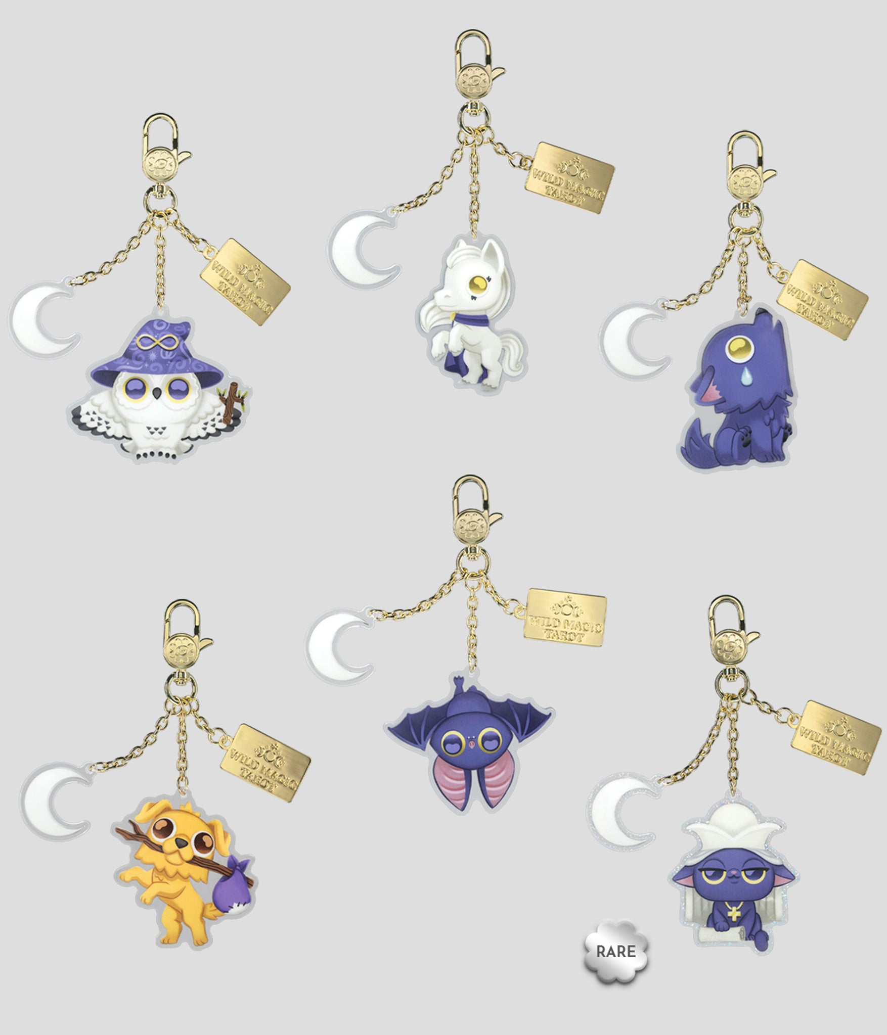Unlock the magic of the cards with this Wild Magic Tarot blind box series! Featuring acrylic bag charms of The Magician, The Fool, The Sun, The Moon and more! Each comes with a swivel hook, plus moon and nameplate charms. Which one will you get? It's a surprise!
